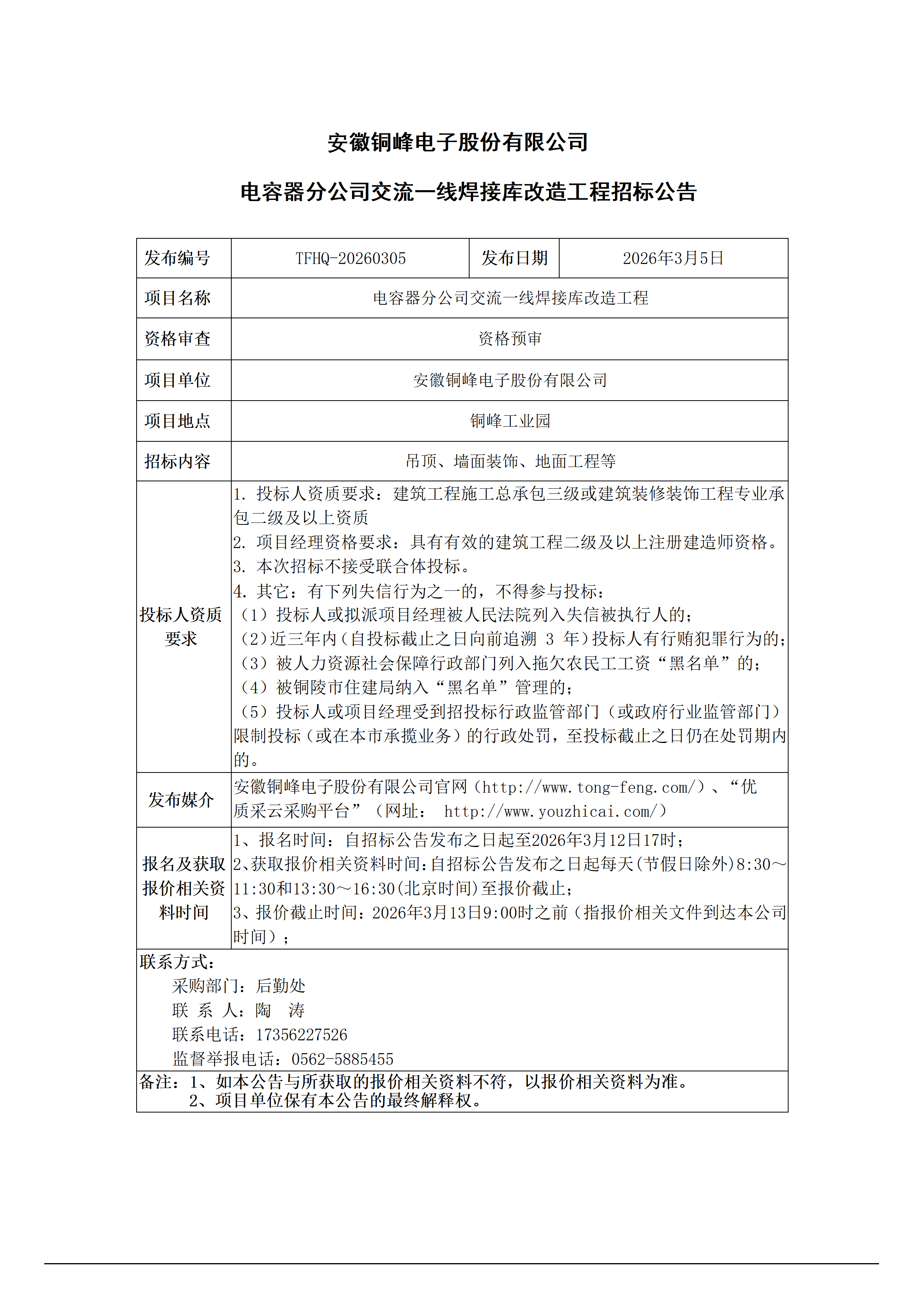 安徽銅峰電子股份有限公司 (電容器分公司交流一線焊接庫改造工程 招標公告)_01