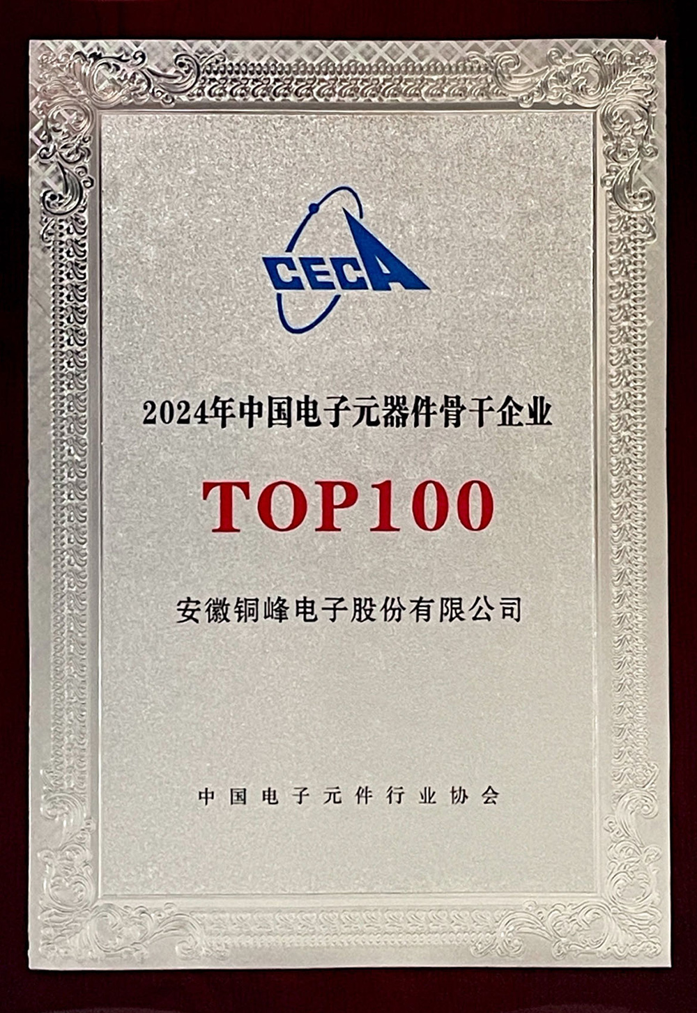 公司獲評(píng)2024年中國電子元器件骨干企業(yè)TOP100榮譽(yù)稱號(hào)