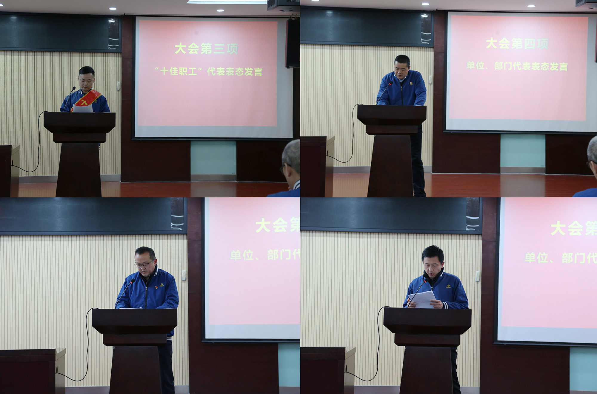 與會(huì)領(lǐng)導(dǎo)為受表彰的2025年度公司“十佳職工”頒發(fā)榮譽(yù)證書及獎(jiǎng)金。“十佳職工”、經(jīng)營(yíng)單位和職能部門代表分別作表態(tài)發(fā)言。